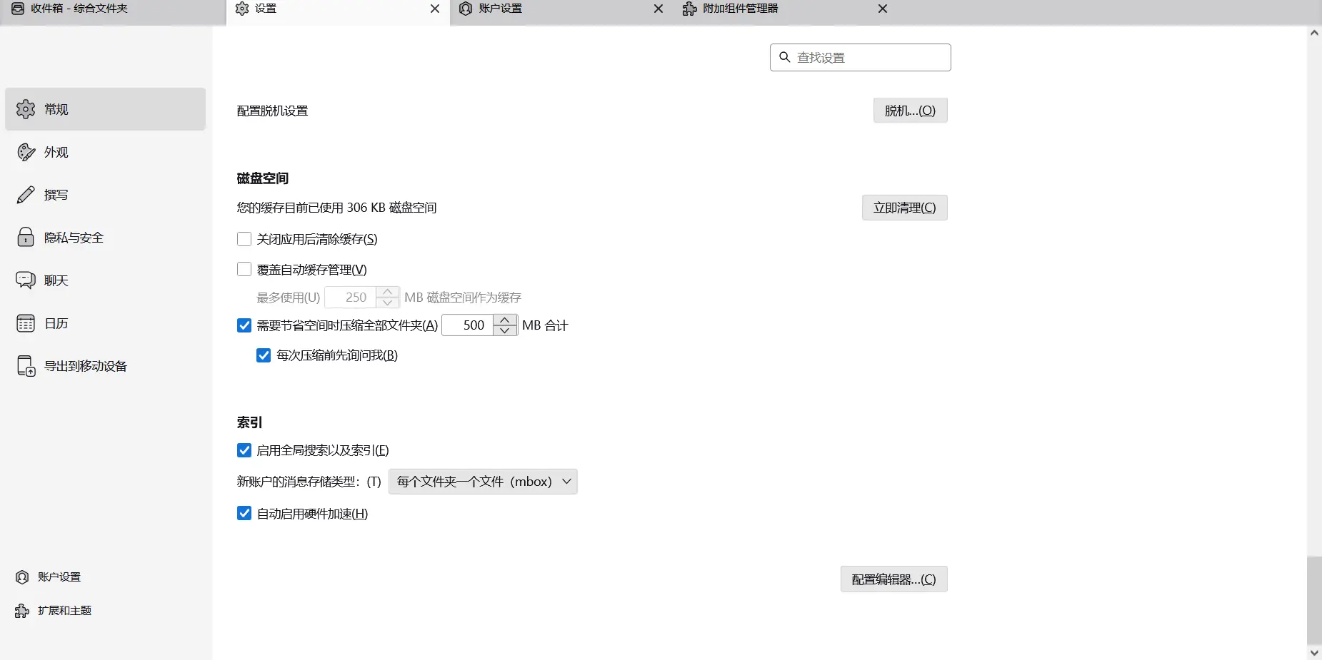 接下来打开ThunderBird,打开配置编辑器修改