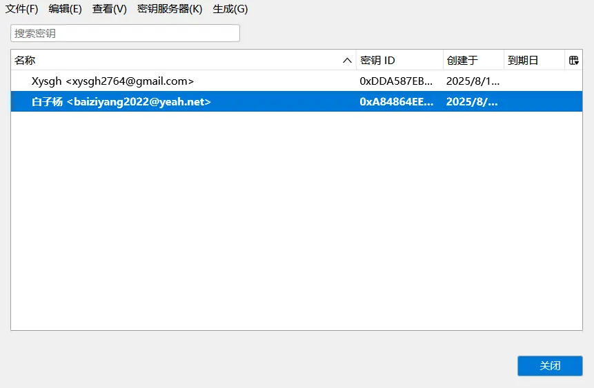 General key info..: pub ed25519/<密钥ID> 2025-08-15 <baiziyang2022@yeah.net>