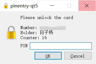 将会弹出一个窗口请求你输入PIN,这里输入提前设定好的即可(不是管理员PIN)