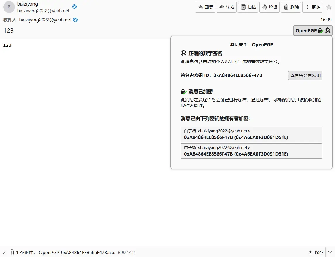 恭喜!你成功配置了Thunderbird使用安全卡签名和解密GPG邮件以实现端到端通信!